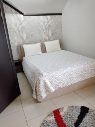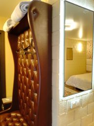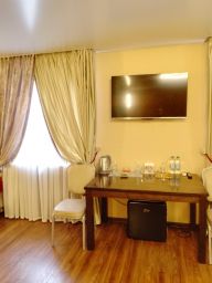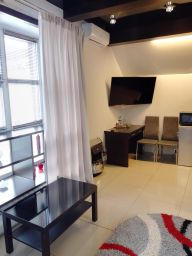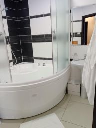 В номере двуспальная кровать, диван, плазмен. тв со SMART TV, холодильник, микроволновка, вся необходимая посуда, Принадлежности для душа, тапочки, халаты, санузел.