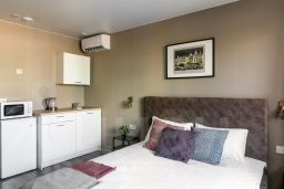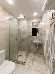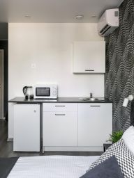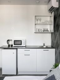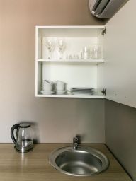 Наш комфортабельный номер, идеально подходит для отдыха и работы. В нем вас ждет уютная кровать с качественным постельным бельем для спокойного сна. Номер оснащен мини-кухней, где вы найдете все необходимые принадлежности для приготовления пищи. Собственная ванная комната оборудована душевой кабиной и современными туалетными принадлежностями. Для удобства гостей предусмотрена рабочая зона с столом и стулом, что делает номер идеальным для деловых поездок. Насладитесь комфортом и уютом в нашем номере!