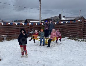 Детская игровая, комната, зона ( качели, карусели, батут, песочница, зоопарк из курочек, рыбки, велосипеды, лыжи.