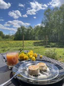 В доме есть оборудованная кухня где можно приготовить еду, холодильник, чайник, микроволновка.