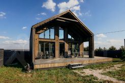 - Просторный дом с панорамными окнами, антресолью и вторым светом в стиле барнхаус.