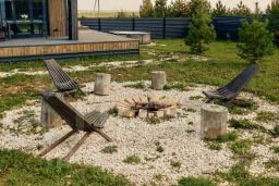 На улице летний бассейн, террасы, костровая и мангальная зоны.