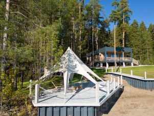 Ищете себе спокойный укромный уголок без соседей за стенкой? - это ваш идеальный вариант! Здесь точно не будет буйных соседей и других посторонних глаз! Только здесь можно по настоящему насладиться природой, искупаться и позагорать на песчаном пляже, покататься на катамаране, закинуть спиннинг на удачу, скоротать вечер у обустроенного очага на берегу, приятно провести время перед сном в уютной атмосфере дома. В доме найдётся всё самое необходимое для комфортного пребывания, также доступны - сауна и баня. Активные гости оценят спортивную площадку и мини-футбольное поле. И всё это - только Ваше!