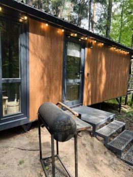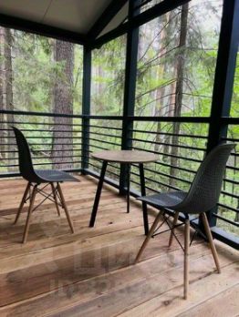 Домик идеально подходит для семьи и из четырех человек. В домике есть крытая веранда, где открывается прекрасный вид на сосновый лес и Каму. Домик оборудован современной мини-кухней с холодильником, чайником и барным столом. За перегородкой расположена спальная зона с большой кроватью. Помимо большой кровати есть раскладной диван. В домике присутствует умный телевизор и WI-FI. Имеется сауна. Бонусом к домику идет своя мангальная зона.