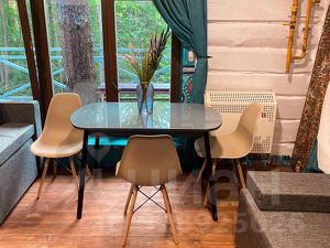 Дом на 8 человек входит: большая гостиная с двумя диванами, стол, стулья, две отдельные спальные комнаты (с кроватью и раздвижным вместительным креслом), большая кухня-столовая, чайник, столовые приборы, тарелки на 10 персон. Санузел: туалет, раковина, две душевые кабины.