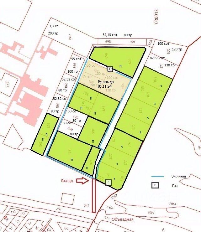 От 80 до 110 тыс. руб за сотку - земельные участки с подвешенными к границе коммуникациями ( газ, электричество).