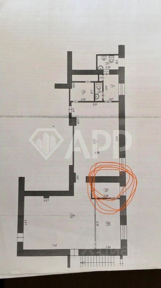 2 кондиционера, 2 санузла, кухня выделена отдельно, система вытяжки и вентиляция. На полу плитка, стены окрашены.