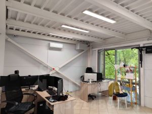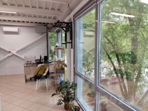 4 этажа, большие панорамные окна, кондиционеры, 2 санузла. Центральная канализация и ХВС, стоит термокотел, металлический каркас, стеновые сэндвич-панели. Мощность электричества 40 кВт с возможностью увеличения, проведен интернет. Объект в идеальном состоянии, год ввода в эксплуатацию -2019.