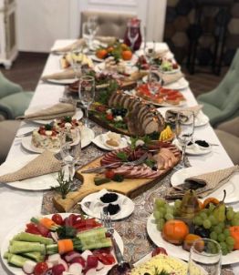Кухня полностью укомплектована всем необходимым оборудованием и техникой: пароконверкомат, шоковая заморозка, современная индукционная печь, пекарский шкаф, посудомойка, холодильные морозильные столы.