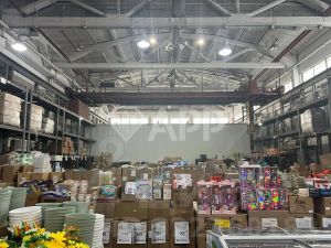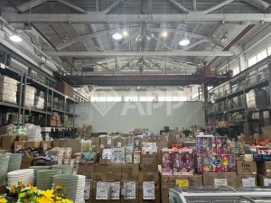 В производственных, торговых, складских помещениях бетонные полы, вдоль стен установлены стеллажи, имеются две кран-балки по 3,5 тонны, приточная система вентилирования, наличие системы кондиционирования, нагрузка 2000т/квм.