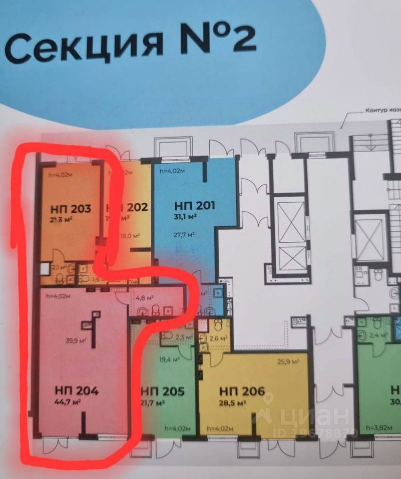 Можно рассмотреть как два отдельных помещения 44,7+21,3 кв.м.