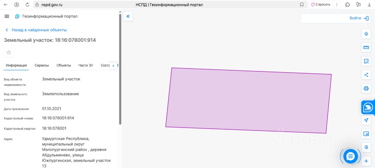 Земельный участок площадью 1 080 кв. м, категория земель земли населенных пунктов, виды разрешенного использования для объявления жилой застройки, кадастровый номер 18:16:078001:914, местонахождение: Удмуртская Республика, д. Абдульменево, ул. Южпургинская, 13. По данным СПИ, строения на земельном участке отсутствуют. Вид права собственность. Обременение аресты. Собственник Ожегова А.А. (уведомление 0000923 от 07.08.2025).