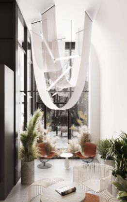 • Центральное двухсветное лобби с высотой потолков 8 м;