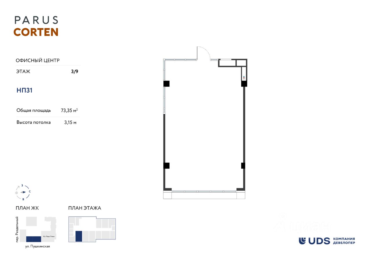 Помещение под офиc 73,35 м2 на 3 этажe БЦ Рarus Cоrtеn.