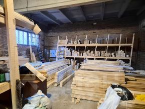 Участок деревообработки включает две сушильные камеры, оснащенные автоматикой для контроля циклов сушки и получения сухого пиломатериала. Также на участке установлен четырехсторонний продольно-фрезерный станок модели С25 с комплектом инструмента для производства основных типов изделий из древесины. В состав участка входят универсальные станки (рейсмусовый, фуговальный, сверлильный и токарный), а также система удаления отходов пневмотранспортом (аспирация).