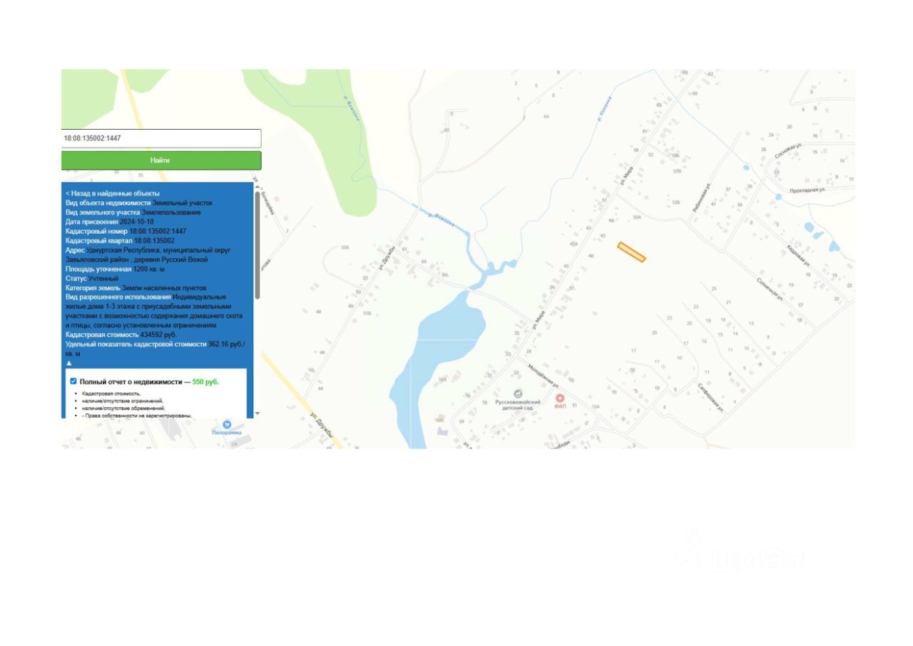 Земельный участок с кадастровым номером 18:08:135002:1447 площадь 1200 по адресу Удмуртская Республика, муниципальный округ Завьяловский район , деревня Русский Вожой