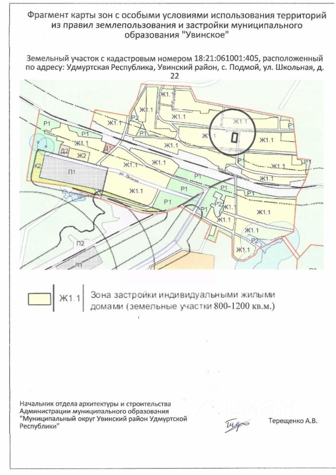 земельный участок с кадастровым номером 18:21:061001:405, расположенного по адресу: Удмуртская Республика, Увинский район, с. Подмой, ул. Школьная, д. 22, площадью 1372 кв.м, без обременений, ограничений и сервитутов, с видом разрешенного использования "Для индивидуального жилищного строительства (код 2.1)"