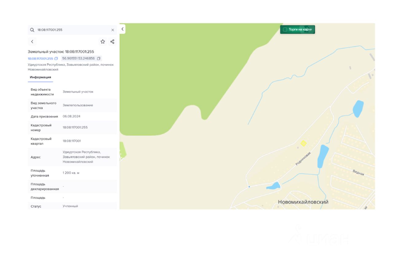 Земельный участок с кадастровым номером 18:08:117001:255 площадь 1200 по адресу Удмуртская Республика, Завьяловский район, починок Новомихайловский