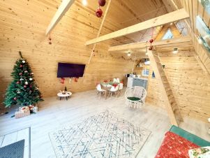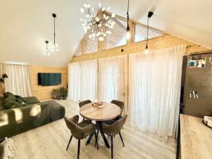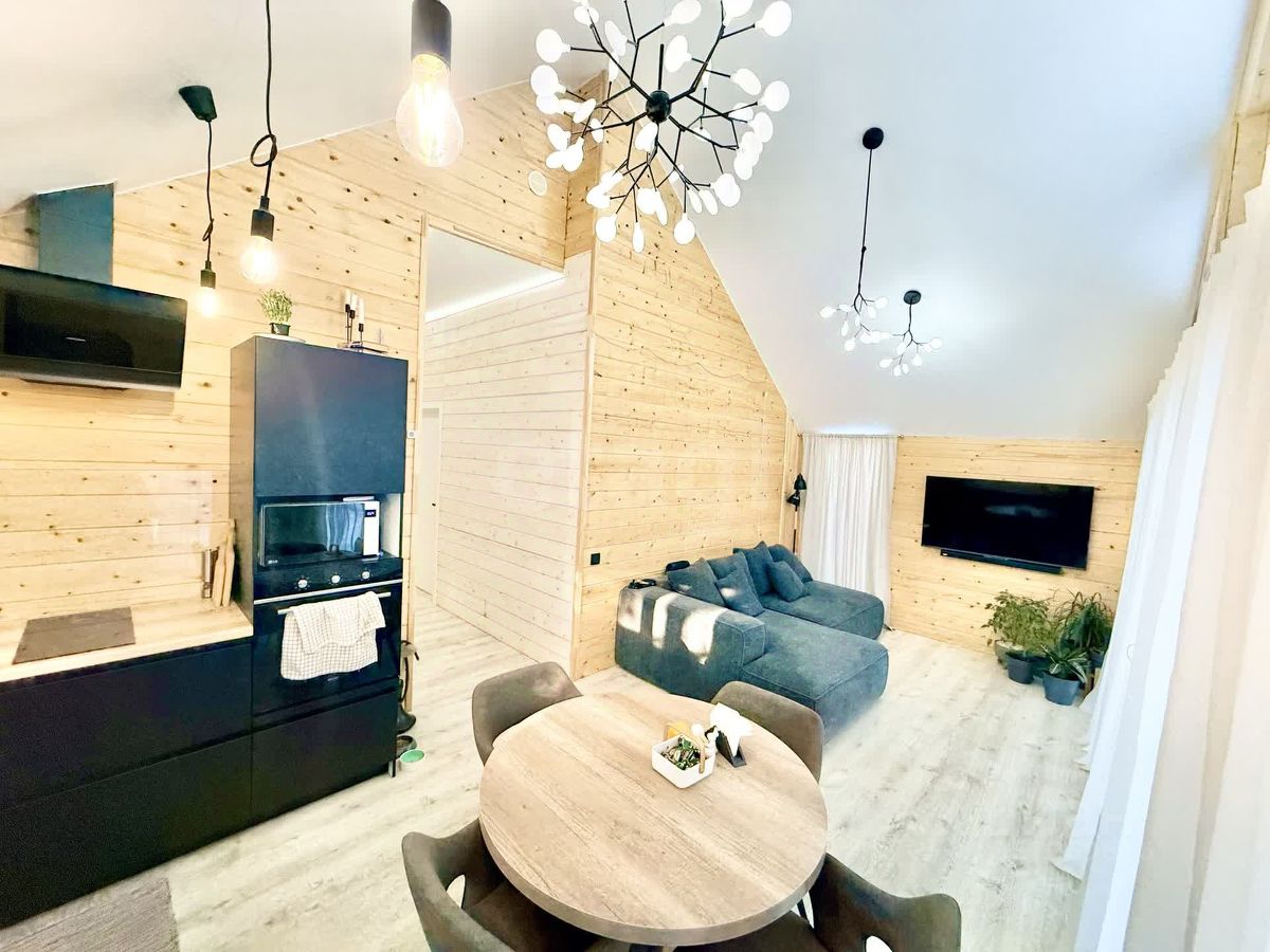 Основное здание — площадью 82.7 м² с двумя спальнями, просторной кухней-гостиной, гардеробной (постирочной) и ванной комнатой, полностью оснащенное техникой.