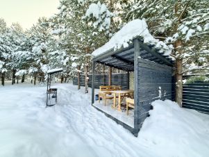 Инфраструктура территории развита и ориентирована на релаксацию и досуг: здесь представлены две бани (из цельного бруса и бочка), три банных чана на 6 человек, несколько беседок и мангальных зон.