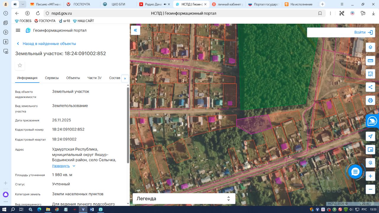 земельный участок с кадастровым номером 18:24:091002:852, общей площадью 1980кв.м., из земель населенных пунктов, расположенного по адресу: Удмуртская Республика, муниципальный округ Якшур-Бодьинский район, село Селычка, улица Молодежная, земельный участок 16, с разрешенным использованием: Для ведения личного подсобного хозяйства (приусадебный земельный участок) (код 2.2).