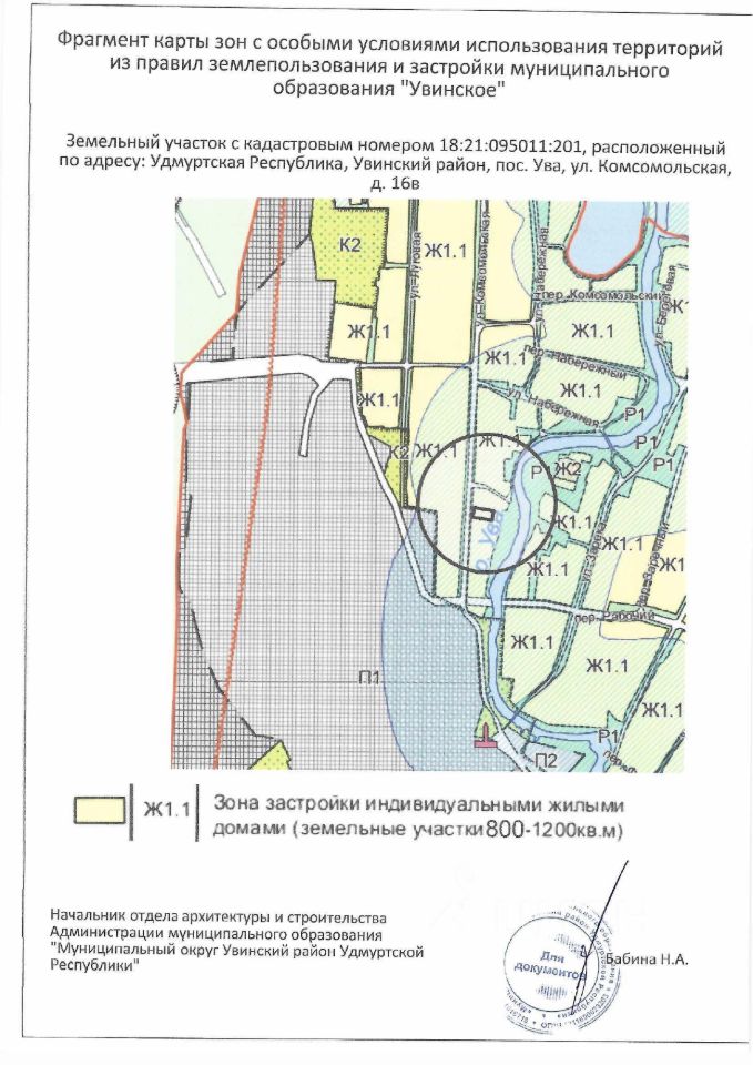земельный участок с кадастровым номером 18:21:095011:201, расположенный по адресу: Удмуртская Республика, Увинский муниципальный район, сельское поселение Увинское, пос. Ува, ул. Комсомольская, земельный участок 16в, площадью 995 кв. метров, 527 кв. метров прибрежная защитная полоса р. Ува в пределах н.п. Ува и на прилегающих территориях; 995 кв. метров зона подтопления территорий, прилегающих к р. Ува в границах п. Ува Увинского муниципального района Удмуртской Республики, затапливаемых при половодьях и паводках 1 % обеспеченности; 995 кв. метров водоохранная зона р.Ува в пределах н.п. Ува и на прилегающих территориях, с видом разрешенного использования "Для индивидуального жилищного строительства (код 2.1)";