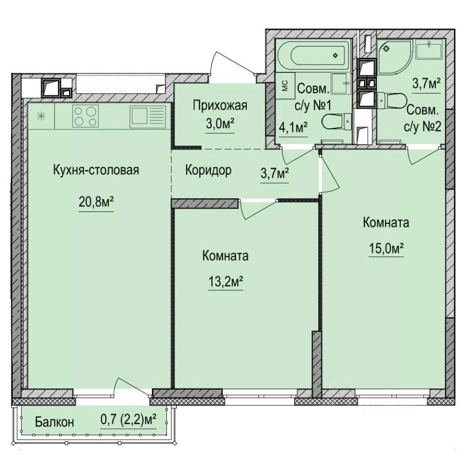 Продаётся 2-комнатная квартира в сданном доме (Союзная, 8Б (Дом 1)), срок сдачи: III-кв. 2025, общей площадью 64.2 кв.м., на 11 этаже. Квартира от застройщика КОМОССТРОЙ. Покупка защищена ФЗ 214 с использованием эскроу счетов.