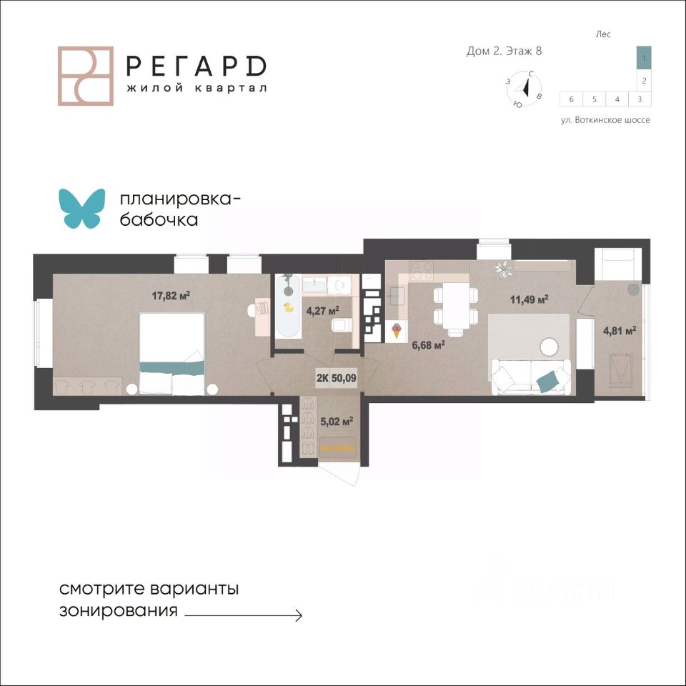 СЕКЦИЯ СДАНА. Началась передача ключей дольщикам Квартира комфорт-класса в предчистовой отделке ЖК "PЕГАРД". Первые три секции дома сданы досрочно. Показы квартир каждый день! Запишитесь на бесплатную экскурсию: оцените район, квартал, двор и свою будущую квартиру. ПРEИMУЩЕСТBA ДОMА И KBАРТАЛА Рядом с кварталом. Рядом с домом находится новый корпус Столичного лицея им. Е. М. Кунгурцева на 825 мест, в этом году открывается новая школа искусств. Поблизости автобусные и троллейбусные остановки, через дорогу — Парк Космонавтов, до центра города — 15 минут. В квартале. На первом этаже — торговая галерея для магазинов, кафе, пунктов выдачи заказов, аптек и других полезных сервисов. Огромный двор площадью 8 000 кв. м без машин со спортплощадкой, детскими игровыми зонами, арт-объектами и продуманным озеленением. Наземный паркинг на 223 машино-места за пределами двора. В доме. По 2 лифта в каждом подъезде, просторная колясочная, домофон в теплом тамбуре. Кладовые на —1 этаже. В квартирах. Потолки 2,7 м. Остекленные лоджии. Увеличенные окна. Вид на лес, двор, или урбанистический пейзаж. ______________________ Все сделки мы проводим с помощью эскроу-счетов. Способы покупки: ипотека, рассрочка, трейд-ин вашей квартиры, 100% оплата; в качестве первоначального взноса подойдёт материнский капитал или жилищный сертификат. *Реклама. ООО СЗ "Тверская, 51". ИНН 1831196731. ЖК "РЕГАРД", дом 2, секции 1, 2, 3. Разрешение на ввод в эксплуатацию 18-26-05-2025 от 27.02.2025 на наш.дом.рф.