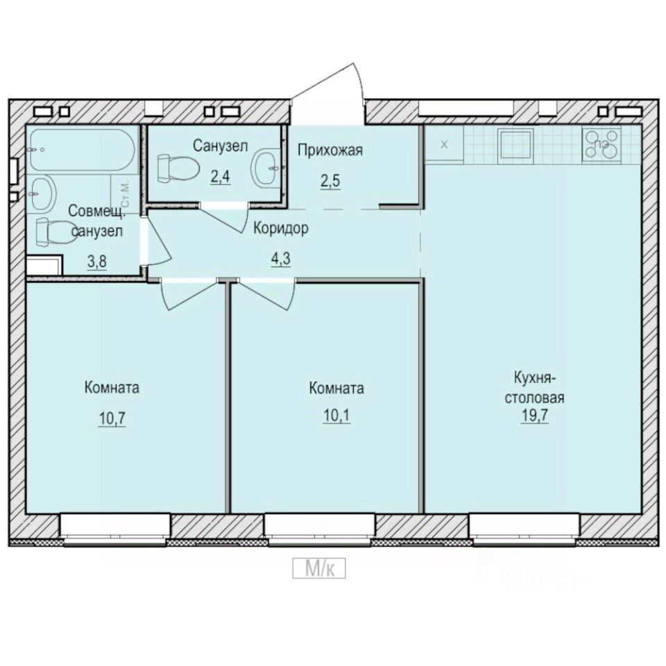 Общая площадь53,5 м²