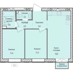 Продаётся 2-комнатная квартира в строящемся доме (Дом 7), срок сдачи: III-кв. 2026, общей площадью 55.4 кв.м., на 3 этаже. Квартира от застройщика КОМОССТРОЙ. Покупка защищена ФЗ 214 с использованием эскроу счетов.