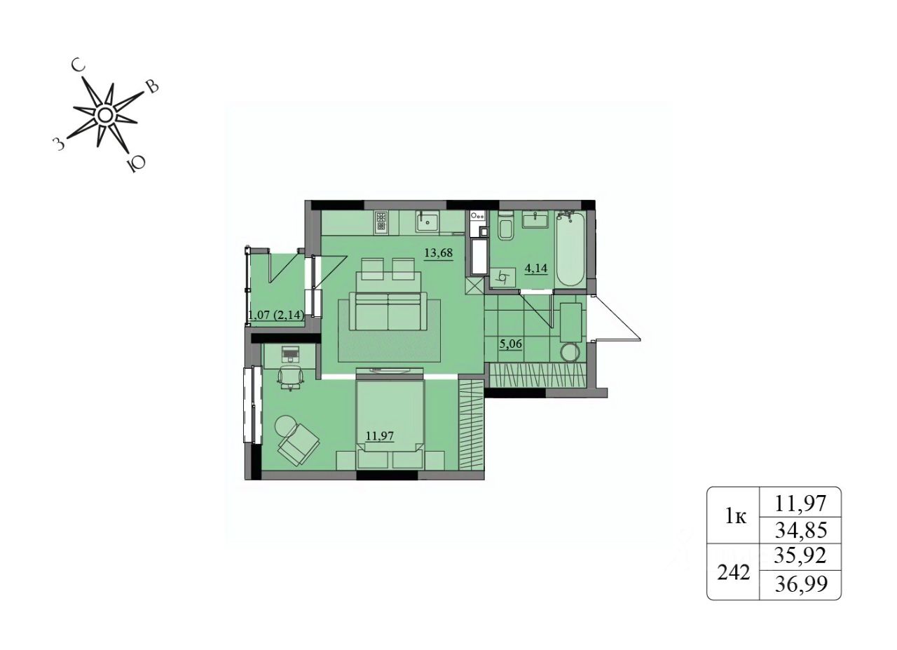 Общая площадь35,92 м²