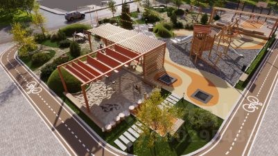 Для детей постарше: велосипедная дорожка, спортивная площадка, зимой хоккейная площадка.