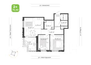 Видовая квартира с террасой 75м2 в ЖК "Трилогия"!