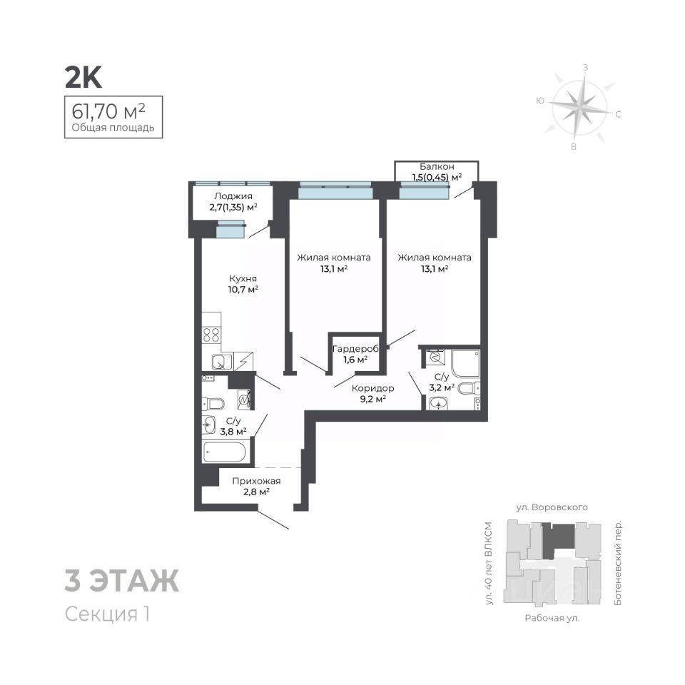 Общая площадь61,7 м²