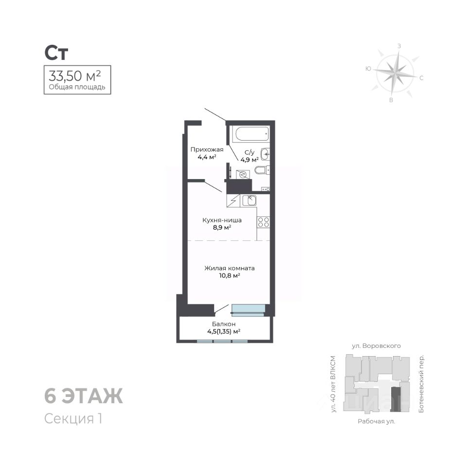 На первом этаже расположена торговая галерея. Дом оснащен автономной системой отопления и видеонаблюдением для вашей безопасности. Для удобства жителей предусмотрены наземный паркинг и большая городская парковка, а также индивидуальные кладовые помещения.