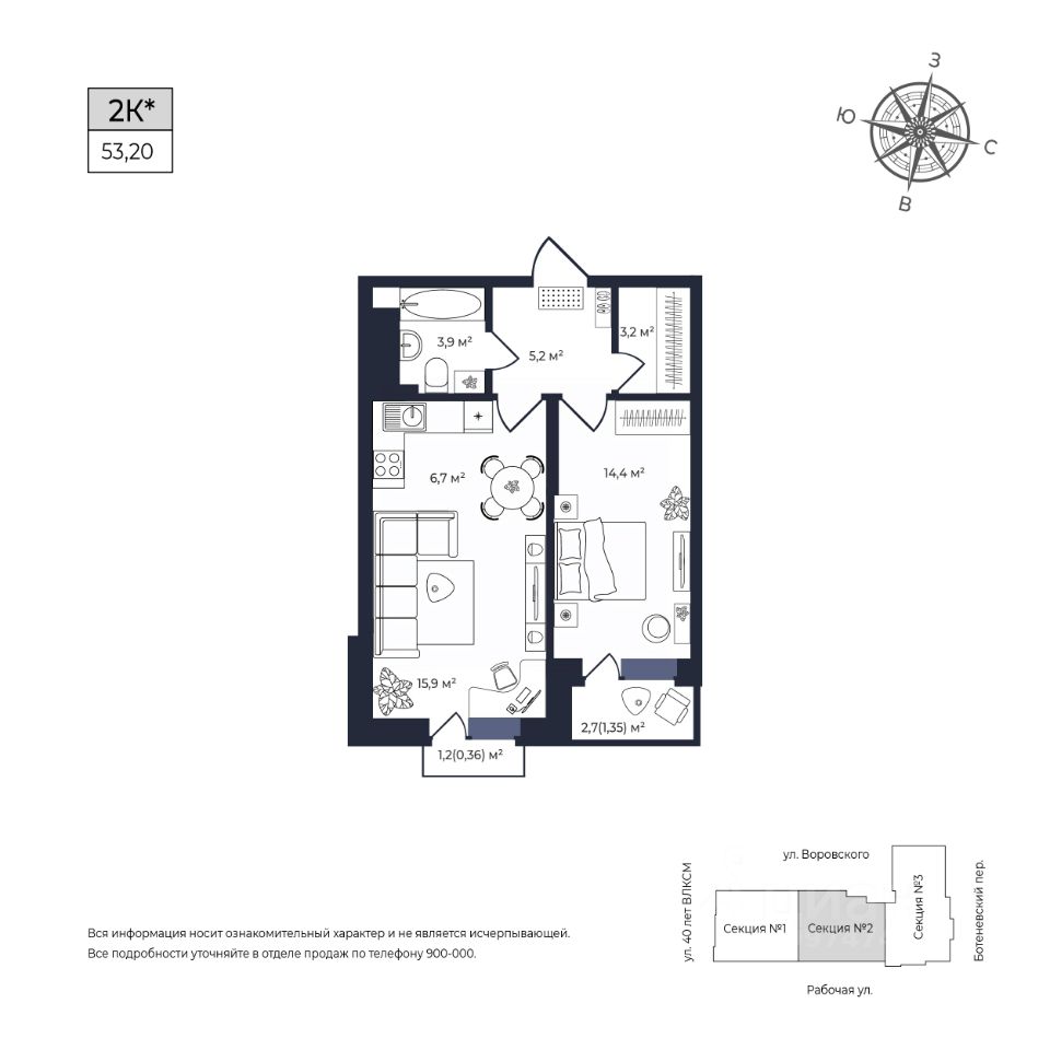 Общая площадь53,2 м²