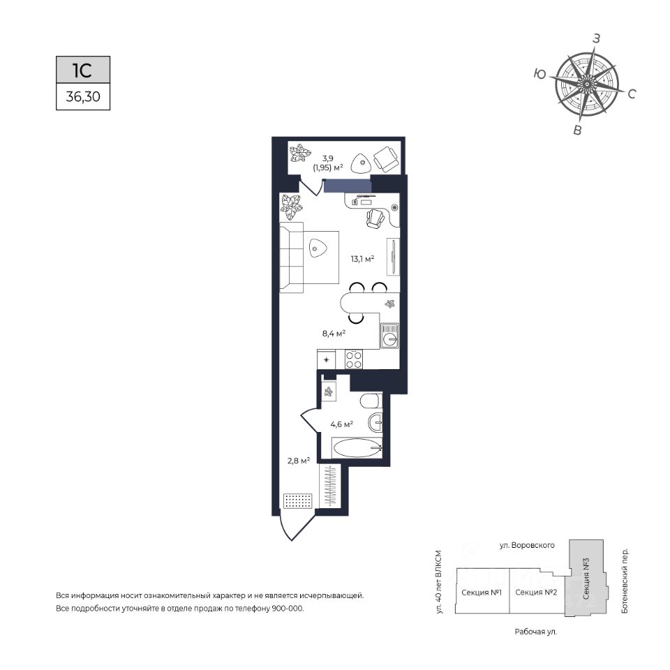 Общая площадь36,3 м²