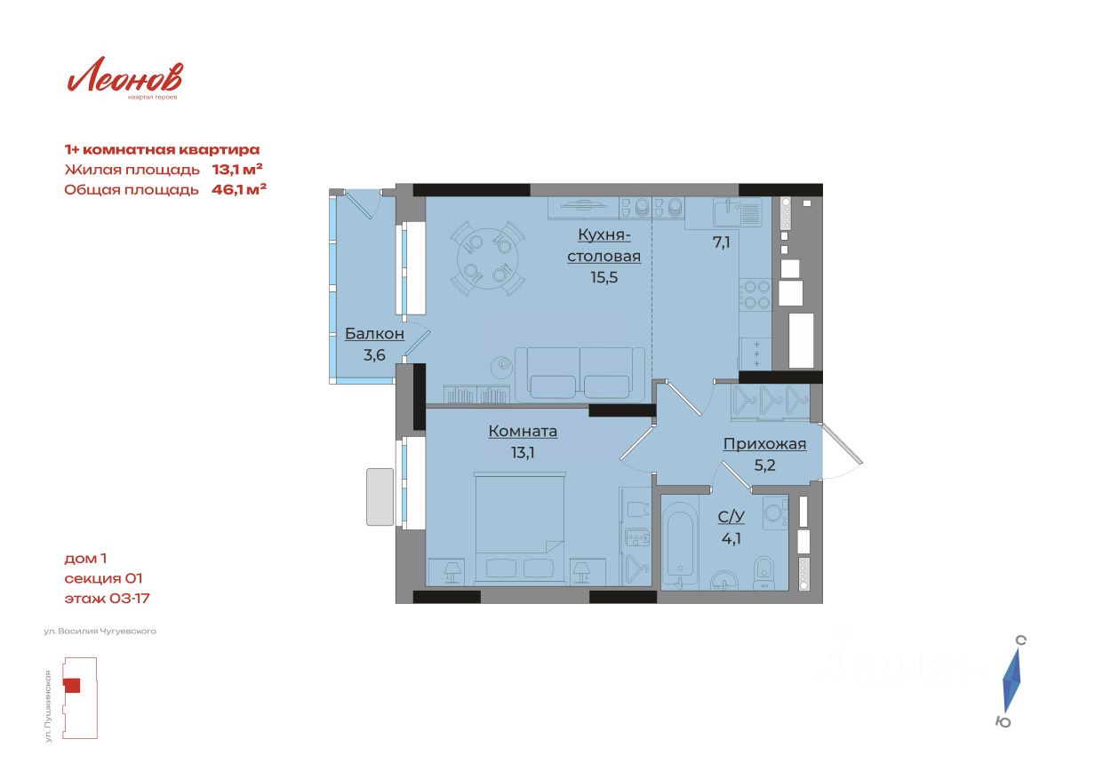 Квартал героев Леонов, Дом 1- это семейный квартал, расположенный в центральном районе г. Ижевска, на пересечении улиц Пушкинской и В. Чугуевского. Удобная транспортная развязка позволит за 7 минут добраться до Центральной площади, сходить в Цирк или прогуляться в "Летнем саду". В шаговой доступности вся инфраструктура центра города, продуктовые магазины, аптеки, мед. учреждения, автосервисы, кафе, рестораны, эко-рынки, образовательные и развлекательные учреждения: ВкусВилл, Школа 91, Спорт.клуб "Проформа", Школа 97, Школа искусств 9, Дом Дружбы народов, ЗАГС, Гастроном, Лингвистический Лицей 25, Цирк, Шахматный клуб, Школа юных летчиков, Бассейн "Сила воды", Стадион "Динамо", Михайловский собор, Летний сад, Стелла "Навеки с Россией", Гуманитарный лицей 30, Центральная площадь. Квартал героев Леонов единственный в своем роде проект квартальной застройки в микрорайоне "Ю-2". Мы включили в него закрытый внутренний двор без машин, огороженный с трех сторон домами, парковочные места вынесены за периметр двора, отсутствие шума от дороги за счет того, что дома не примыкают непосредственно к проезжей части. 17-этажное трехсекционное здание дома позволяет своим жителям уже со средних этажей любоваться панорамными видами из своих окон. Преимущества дома: Парадный холл в стильной благородной отделке и понятной навигацией. Колясочные для хранения колясок и спортивного инвентаря вне квартиры. Велопарковки организованы у каждого подъезда. Места для консьержа в каждой секции для организации чистоты и порядка. Сквозные подъезды для удобства захода в здание и изнутри двора и со стороны улицы. Просторные и бесшумные лифты по два в каждом подъезде для быстрой и бесперебойной работы. Обустройство придомовой территории: Для маленьких детей: качели, песочница, батуты. Для детей постарше: велосипедная дорожка, спортивная площадка, зимой хоккейная площадка. Для взрослых: пергола зона с шезлонгами и скамьями для отдыха. Для всех возрастов: пешеходные дорожки, газоны, клумбы, ель в центре двора. Технологические решения: Теплое панорамное остекление лоджий с двухкамерными стеклопакетами. Увеличенные окна с пятикамерным профилем. Надежная металлическая входная дверь с проверенной фурнитурой. Корзины для кондиционеров для единого стиля фасада. Толстые наружные стены (кирпичные стены с фасадным утеплением). Полусухая стяжка пола. Трубы с пониженным уровнем шума Безопасность: Система видеонаблюдения по периметру квартала и во дворе. Видеодомофоны. Огороженная территория квартала. Зона консьержа. Противопожарная система (пожарные датчики, дымоудаление). Предусмотрена предчистовая или чистовая отделка квартиры современными материалами в светлых тонах. Срок ввода в эксплуатацию IV кв. 2025г. Условия приобретения: ФЗ-214 (с эскроу-счетом) Скидка при 100% оплате Все виды ипотеки Квартал Леонов представляет собой воплощение лучших современных стандартов жилья комфорт-класса, гармонично вписывается в сложившуюся городскую архитектуру и развивает террит