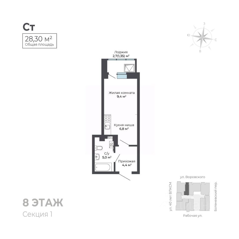 На первом этаже расположена торговая галерея. Дом оснащен автономной системой отопления и видеонаблюдением для вашей безопасности. Для удобства жителей предусмотрены наземный паркинг и большая городская парковка, а также индивидуальные кладовые помещения.