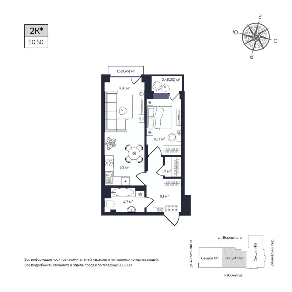 Общая площадь50,1 м²