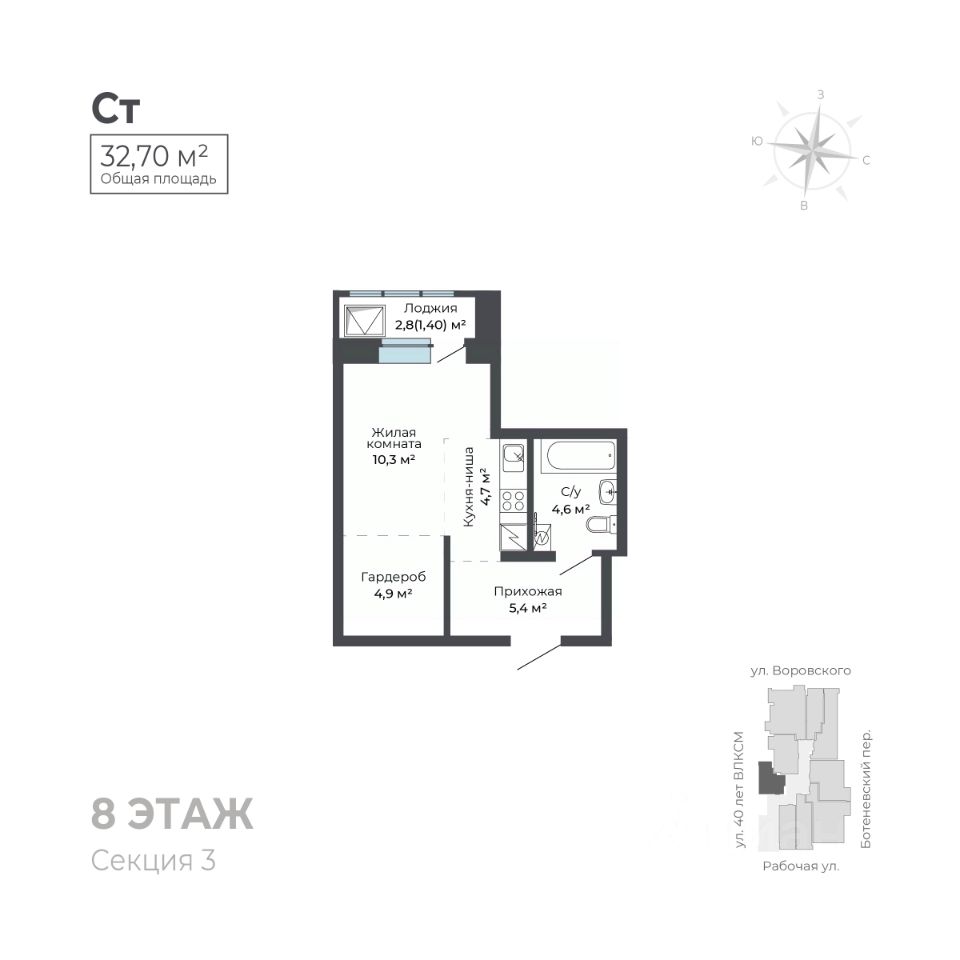На первом этаже расположена торговая галерея. Дом оснащен автономной системой отопления и видеонаблюдением для вашей безопасности. Для удобства жителей предусмотрены наземный паркинг и большая городская парковка, а также индивидуальные кладовые помещения.