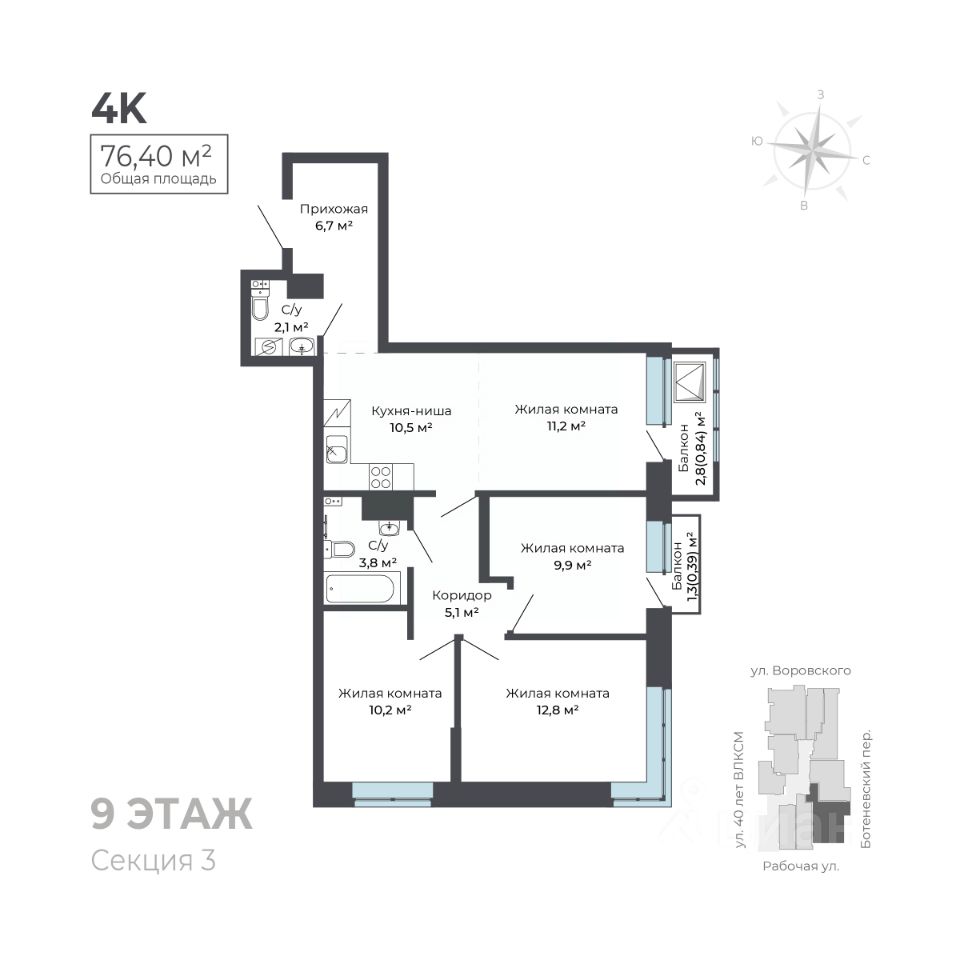 Общая площадь76,4 м²