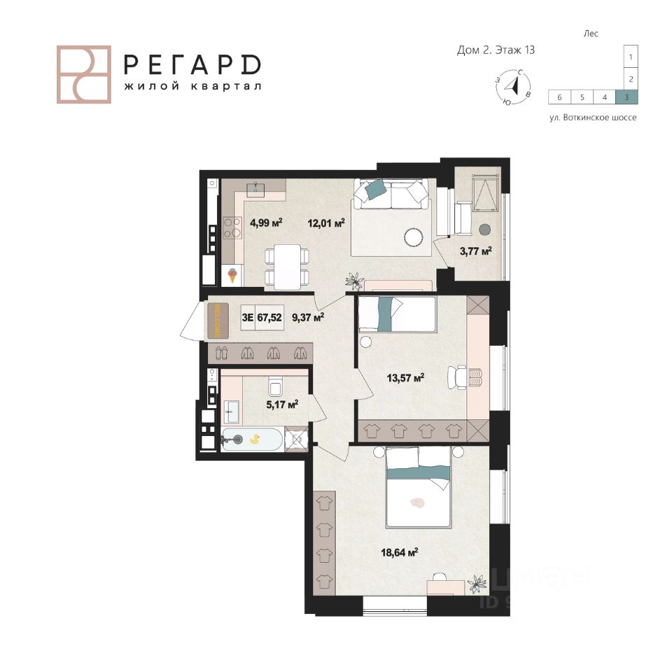 СЕКЦИЯ СДАНА. Началась передача ключей дольщикам Квартира комфорт-класса в предчистовой отделке ЖК "PЕГАРД". Первые три секции дома сданы досрочно. Показы квартир каждый день! Запишитесь на бесплатную экскурсию: оцените район, квартал, двор и свою будущую квартиру. ПРEИMУЩЕСТBA ДОMА И KBАРТАЛА Рядом с кварталом. Рядом с домом находится новый корпус Столичного лицея им. Е. М. Кунгурцева на 825 мест, в этом году открывается новая школа искусств. Поблизости автобусные и троллейбусные остановки, через дорогу — Парк Космонавтов, до центра города — 15 минут. В квартале. На первом этаже — торговая галерея для магазинов, кафе, пунктов выдачи заказов, аптек и других полезных сервисов. Огромный двор площадью 8 000 кв. м без машин со спортплощадкой, детскими игровыми зонами, арт-объектами и продуманным озеленением. Наземный паркинг на 223 машино-места за пределами двора. В доме. По 2 лифта в каждом подъезде, просторная колясочная, домофон в теплом тамбуре. Кладовые на —1 этаже. В квартирах. Потолки 2,7 м. Остекленные лоджии. Увеличенные окна. Вид на лес, двор, или урбанистический пейзаж. ______________________ Все сделки мы проводим с помощью эскроу-счетов. Способы покупки: ипотека, рассрочка, трейд-ин вашей квартиры, 100% оплата; в качестве первоначального взноса подойдёт материнский капитал или жилищный сертификат. *Реклама. ООО СЗ "Тверская, 51". ИНН 1831196731. ЖК "РЕГАРД", дом 2, секции 1, 2, 3. Разрешение на ввод в эксплуатацию 18-26-05-2025 от 27.02.2025 на наш.дом.рф.
