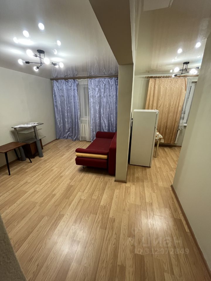 Жильё имеет удобную планировку: светлая комната с выходом на балкон, совмещённый санузел и кухня, где можно разместить всё необходимое для комфортного приготовления пищи. Из окон открывается вид на улицу, что добавляет пространству света и воздуха.