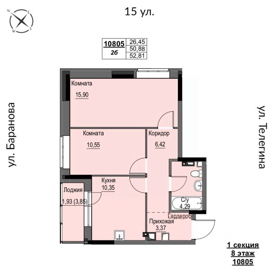 Продаётся 2-комнатная квартира в строящемся доме (Дом 2), срок сдачи: III-кв. 2026, общей площадью 52.81 кв.м., на 8 этаже. Жилой комплекс "Успенский" представляет собой 22-этажный дом премьер-класса, расположенный по улице Телегина в Ленинском районе города Ижевска.