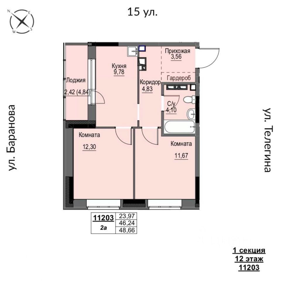 Продаётся 2-комнатная квартира в строящемся доме (Дом 2), срок сдачи: III-кв. 2026, общей площадью 48.66 кв.м., на 12 этаже. Жилой комплекс "Успенский" представляет собой 22-этажный дом премьер-класса, расположенный по улице Телегина в Ленинском районе города Ижевска.