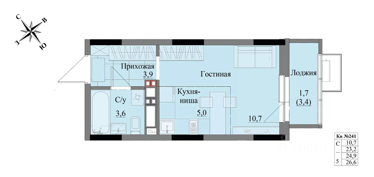 Общая площадь24,9 м²
