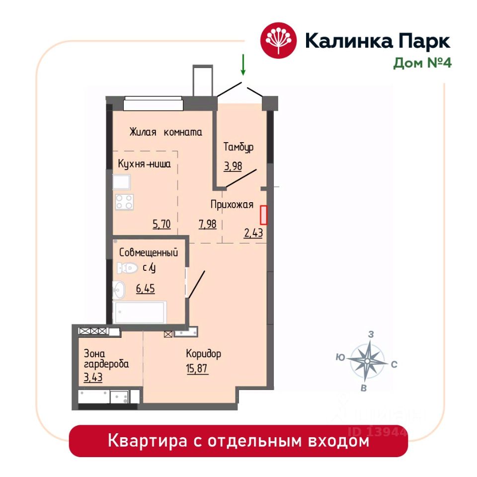 Продается квартира-студия в новом доме 4 микрорайона "Калинка Парк". Микрорайон "Калинка Парк" расположен в сердце соснового леса, но при этом в развитом районе и всего в 5 минутах ходьбы до остановки общественного транспорта. Новая квартира здесь это не просто квадратные метры, это новый образ жизни, комфортная среда и сплоченное сообщество единомышленников со сходными интересами и ценностями. Дом класса Комфорт Эстетичная архитектура и переменная этажность дома Огороженный безопасный двор без машин Просторные дизайнерские холлы со стойкой консьержа и санузлом Высота потолков 2.62-3.0 м зависит от выбранного этажа Остекленные теплые лоджии Корзина для кондиционера в каждой квартире Подземный паркинг и кладовые с доступом на лифте В доме собственная газовая котельная