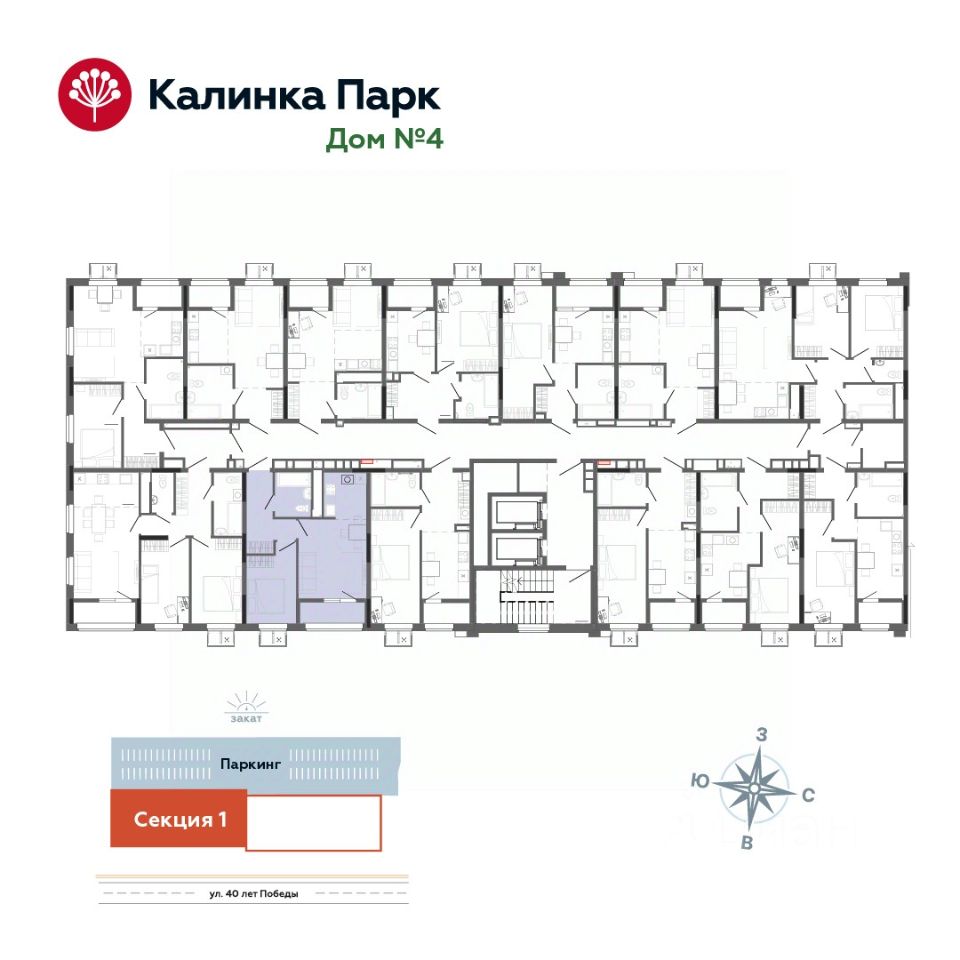 Продается однокомнатная квартира в новом доме 4 микрорайона "Калинка Парк". Микрорайон "Калинка Парк" расположен в сердце соснового леса, но при этом в развитом районе и всего в 5 минутах ходьбы до остановки общественного транспорта. Новая квартира здесь это не просто квадратные метры, это новый образ жизни, комфортная среда и сплоченное сообщество единомышленников со схожими интересами и ценностями. Дом класса Комфорт Эстетичная архитектура и переменная этажность дома Огороженный безопасный двор без машин Просторные дизайнерские холлы со стойкой консьержа и санузлом Высота потолков 2.62-3.0 м зависит от выбранного этажа Остекленные теплые лоджии Корзина для кондиционера в каждой квартире Подземный паркинг и кладовые с доступом на лифте В доме собственная газовая котельная