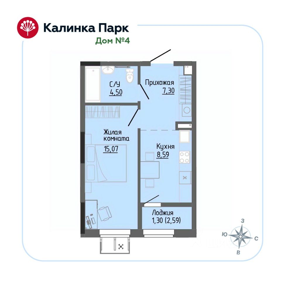 Продается однокомнатная квартира в новом доме 4 микрорайона "Калинка Парк". Микрорайон "Калинка Парк" расположен в сердце соснового леса, но при этом в развитом районе и всего в 5 минутах ходьбы до остановки общественного транспорта. Новая квартира здесь это не просто квадратные метры, это новый образ жизни, комфортная среда и сплоченное сообщество единомышленников со схожими интересами и ценностями. Дом класса Комфорт Эстетичная архитектура и переменная этажность дома Огороженный безопасный двор без машин Просторные дизайнерские холлы со стойкой консьержа и санузлом Высота потолков 2.62-3.0 м зависит от выбранного этажа Остекленные теплые лоджии Корзина для кондиционера в каждой квартире Подземный паркинг и кладовые с доступом на лифте В доме собственная газовая котельная